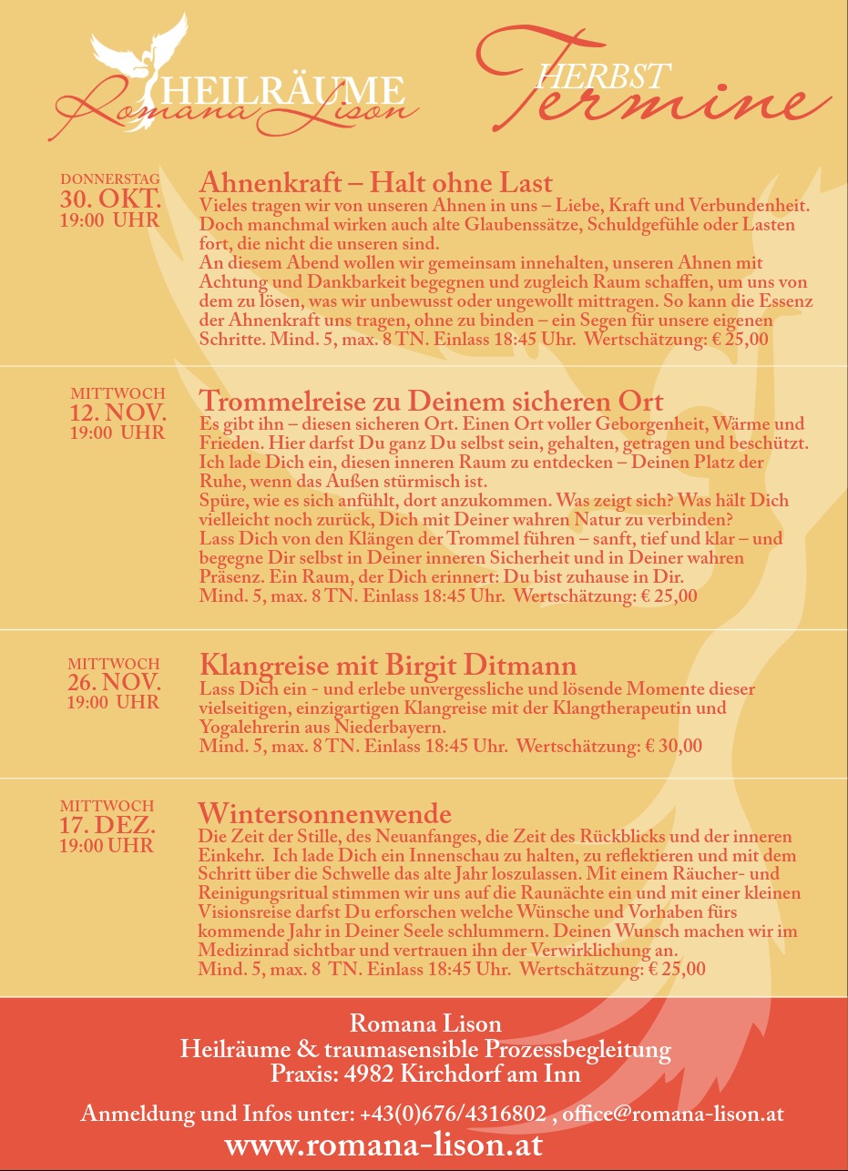 Infos und Anmeldung: Romana Lison, Tel: 00436764316802